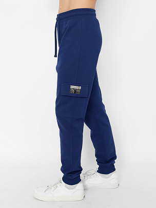 Брюки для мальчика с накладными карманами с клапаном. Нижние срезы брюк оформлены притачными манжетами из полотна с эластаном. Пояс притачной, с резинкой и функциональным шнуром. На карман настрочена декоративная жаккардовая этикетка.
